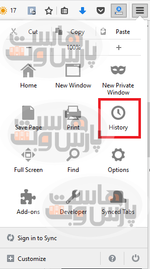 در منو باز شده برای شما بر روی History کلیک نمائید.