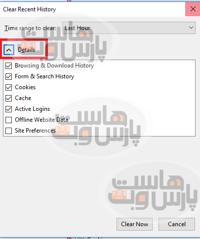 در آخرین مرحله از پاک کردن کش مروگر شما باید جزئیات کش خود را انتخاب کنید ,در صورتی گه جزئیات مثل مثال بالا باز نشده با کلیک بر روی Details توضیحات برای شما به نمایش خواهد درآمد.در قسمت Details، گزینه Cache را انتخاب کنید و در آخر با کلیک کردن بر روی Clear Now کش های شما پاک میشود.